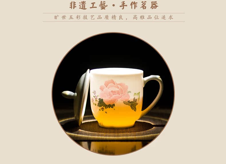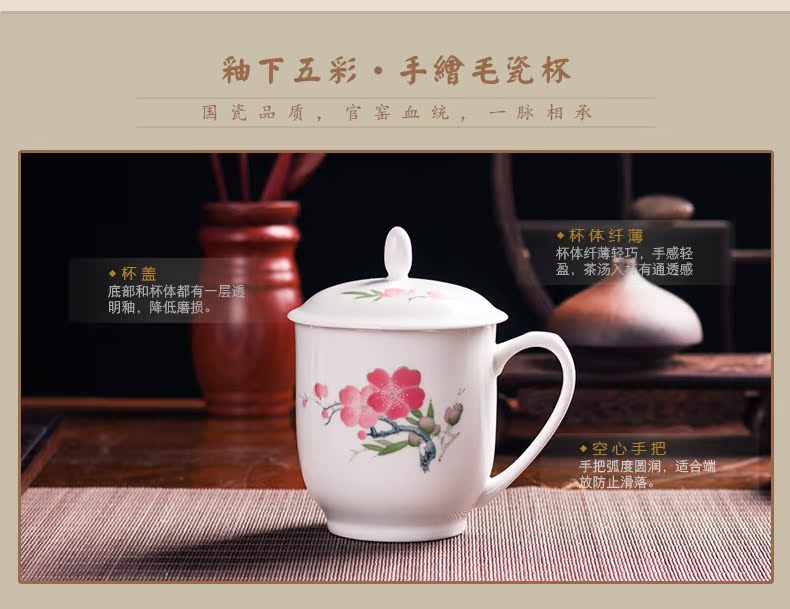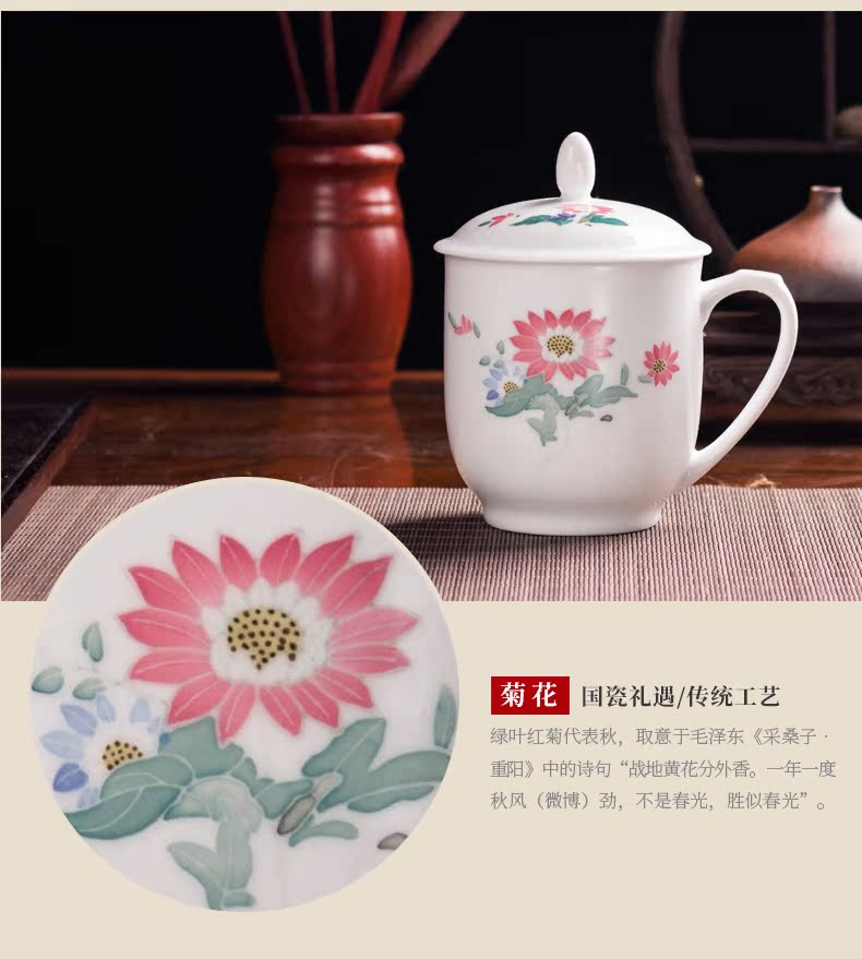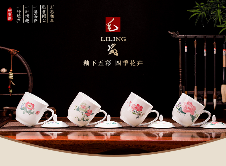 MAO liling porcelain cup next spring, summer, autumn and winter hand draw glaze color classic work conference tea cup gift cup business gifts