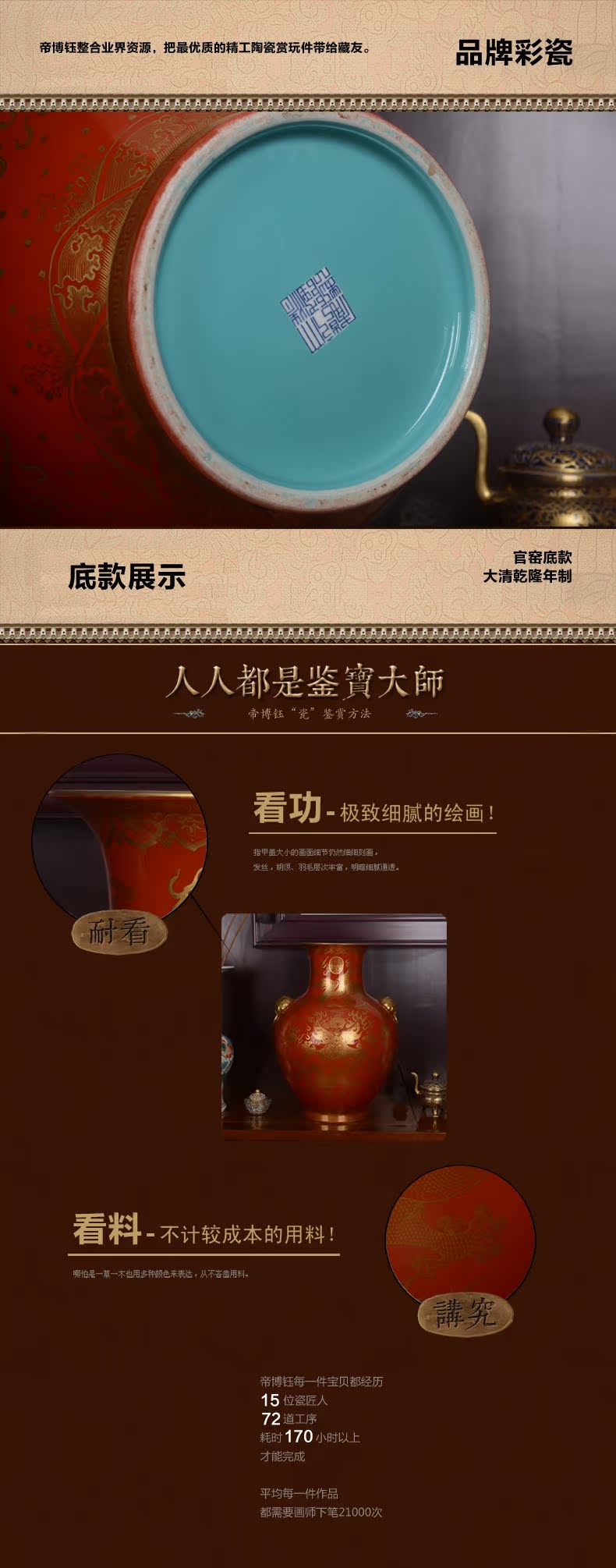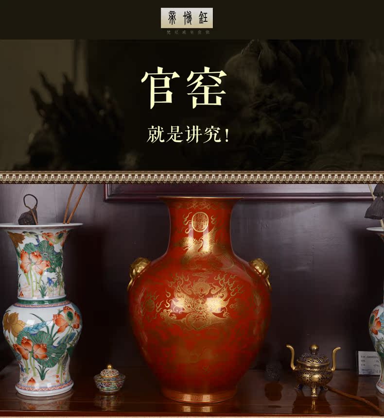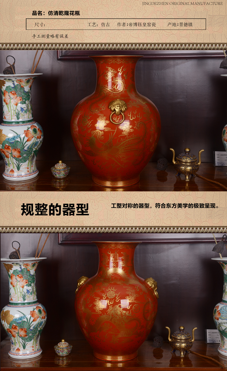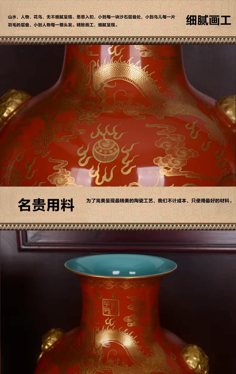 Jingdezhen ceramics ocean 's high - end antique red see colour to the reign of qianlong vase household adornment process sitting room furnishing articles