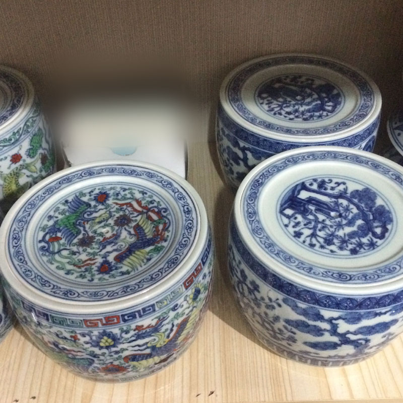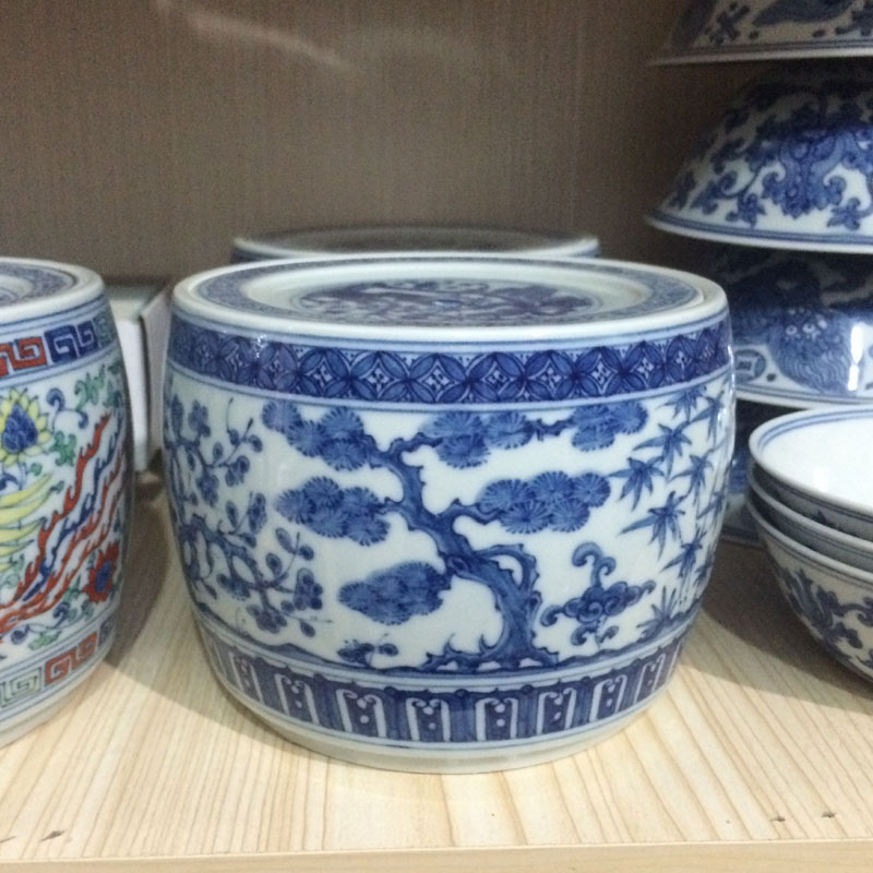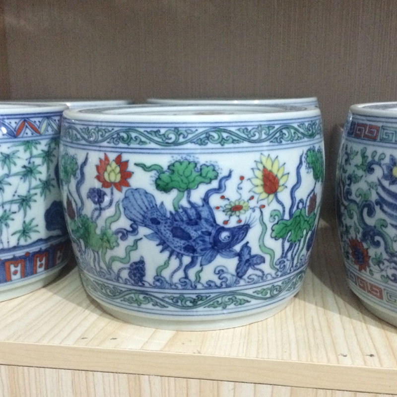 Jingdezhen color copy to fight cricket cricket as cans to tank porcelain color washing tank fights the color blue and white pot